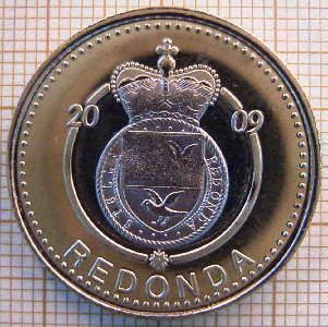 Estas dos monedas conmemoran el 50 Aniversario del Mini, tienen como reverso común el escudo de Redonda.