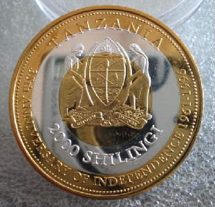 Tanzania no ha emitido todavía moneda de curso legal solo existen unas monedas de prueba acuñadas en la Ceca estatal de Rumania a petición de la International Currency Board para entregarlas como pruebas de emisión de Tanzania.